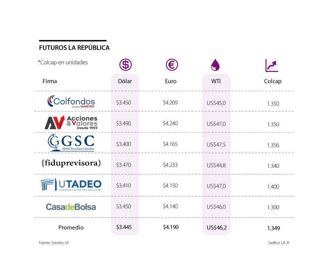 Por el lado del mercado accionario local, la expectativa es que el Colcap aumente en promedio a 1.349 unidades. Cabe mencionar que el viernes cerró en 1.341,23 puntos.