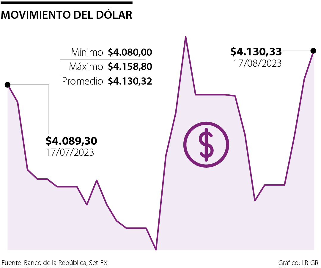 Y es que, si se analiza el aumento que desde el viernes ha tenido el dólar, la divisa ha ganado más de $174, pues hoy la jornada arranca con una TRM en $4.130,33, luego de que la divisa ayer volviera a romper el techo de los $4.100 tras cerrar en $4.130,32, ganando $34,24 frente a la TRM. Pero, ¿qué lo ha llevado a tener dicho aumento?