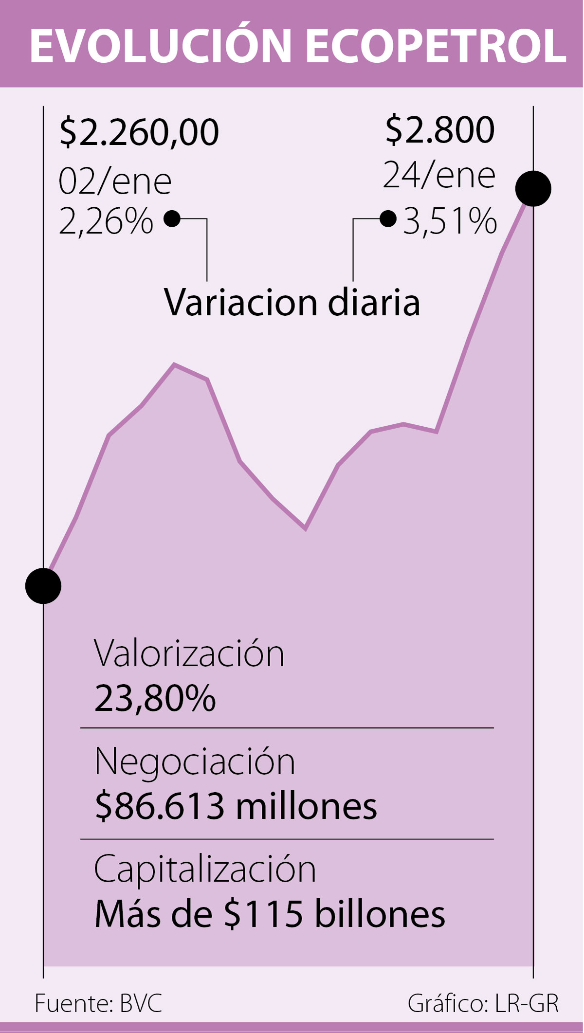 La acción de Ecopetrol cerró el día en $2.800