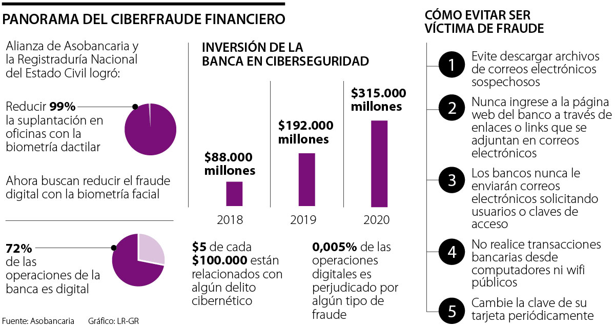 Pese a las quejas por ciberfraudes, Hernando José Gómez, presidente de la Asociación Bancaria y de Entidades Financieras de Colombia (Asobancaria), destacó que solo $5 de cada $100.000 están relacionados con un delito cibernético, cifra que representa solo 0,005% del monto transado.