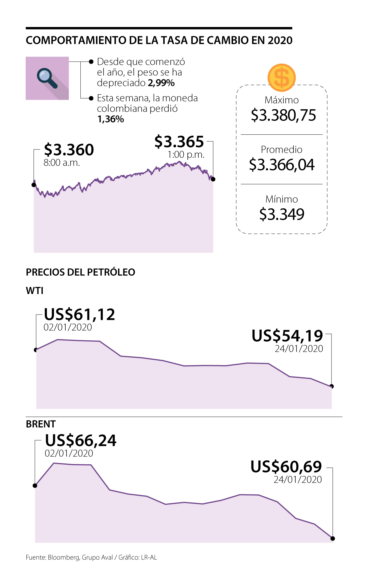 Desde que se confirmaron en China los casos de coronavirus, la noticia no solo ha afectado al turismo en ese país, sino que ha influido en el comercio y en los mercados. El peso colombiano ha estado entre los perjudicados, pues de una cesta de seis monedas emergentes de América Latina, la divisa colombiana fue la que más se devaluó frente al dólar esta semana (-1,36%). El impacto de la propagación del virus ha perjudicado la cotización del crudo y, con ello, la fortaleza del peso.