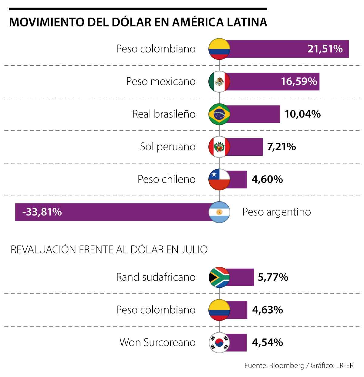 De hecho, el segundo en el ranking de monedas es el peso mexicano que se ha fortalecido 16,59% desde enero, y en tercer lugar el real brasileño con más de 10%.