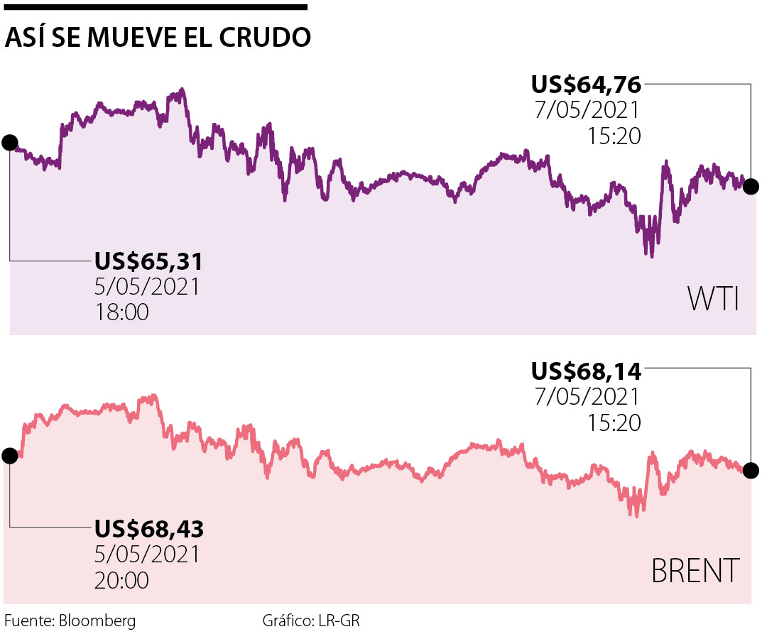 El crudo estadounidense West Texas Intermediate cayó 0,14% a US$64,79 por barril, mientras el petróleo Brent bajó 0,21%, a US$68,24.