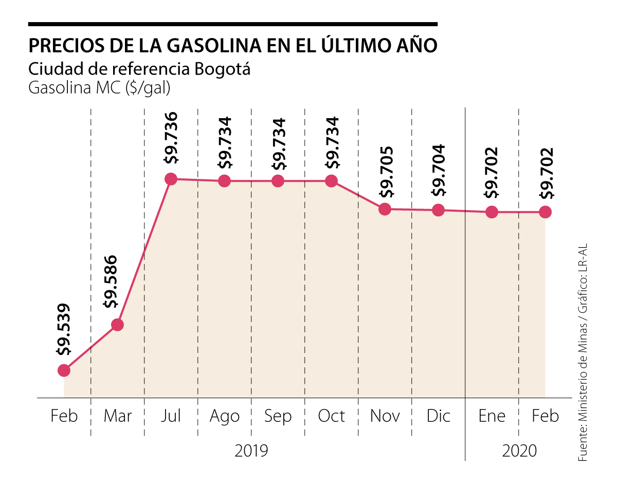 El experto añadió que si los precios del crudo se mantienen entre US$30 y US$35, los precios de la gasolina bajarán y se mantendrán hasta que el crudo se recupere. Es de resaltar que durante los dos primeros meses de 2020, el precio de la gasolina se ha mantenido en $9.702 por galón, teniendo como referencia a Bogotá.