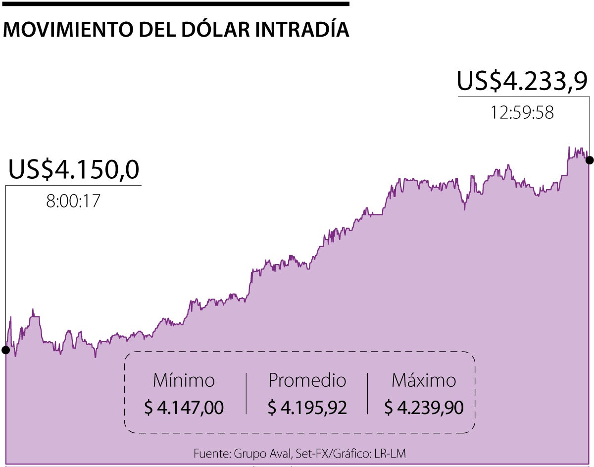 El dólar ayer tocó máximos incluso arriba de la línea de $4.200, corrigiendo la tendencia a la baja. Este incrementó se dio a causa de que el sistema de la Reserva Federal (Fed), que indicó en sus minutas que realizarían un par de aumentos de tasas adicionales este año.