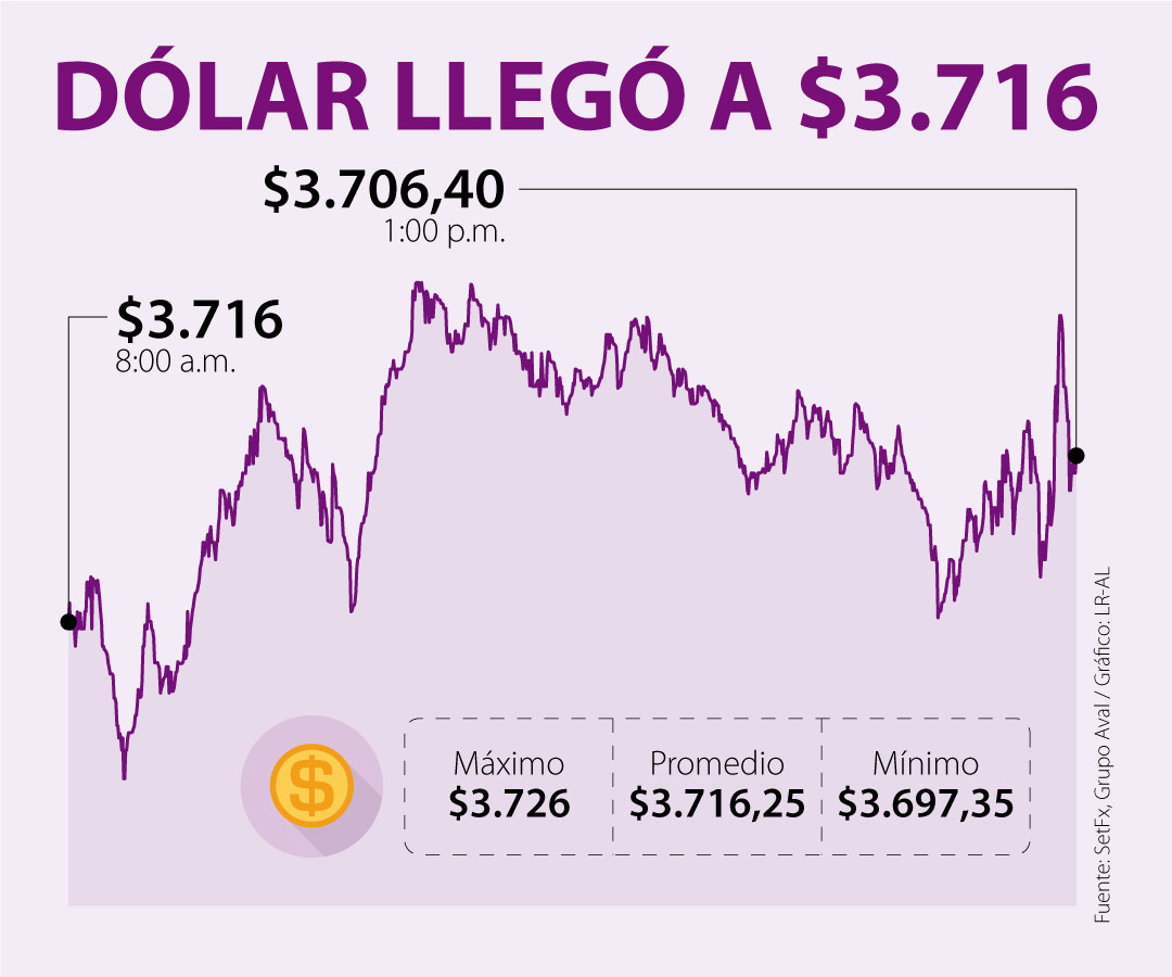 La divisa se negoció en promedio a $3.716,25. La Reserva Federal reiteró que sigue con su compromiso de mantener las tasas bajas