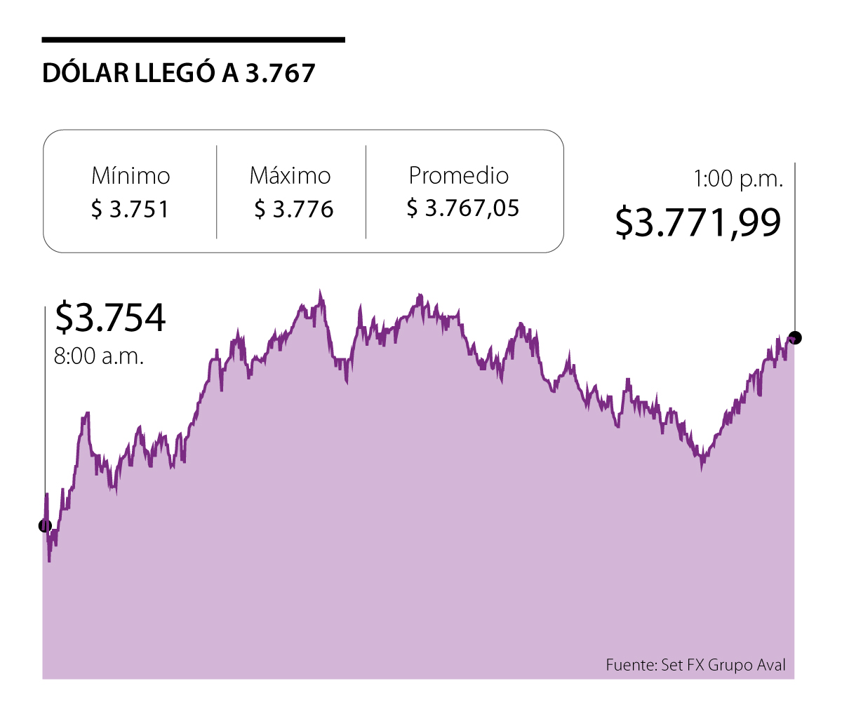 El precio del dólar aumentó $11,44 en la jornada anterior, se cotizó en promedio a $3.767,05 y confirmó su relativa estabilidad durante la semana.