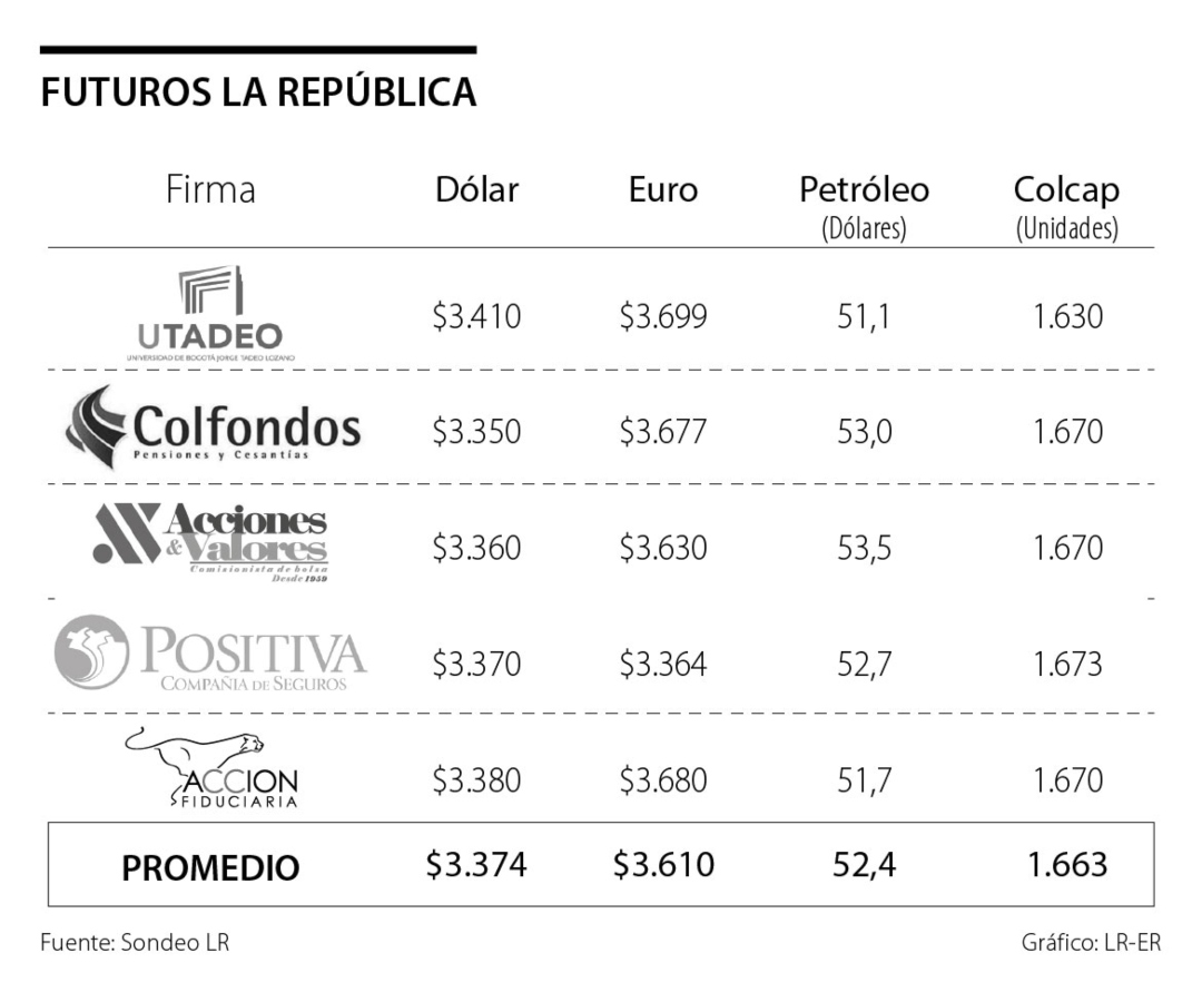 Según un sondeo realizado por LR, los analistas de las comisionistas y entidades financieras o académicas más importantes del país proyectan que la divisa estadounidense continuará por debajo de $3.400 y se negociará en promedio a $3.374, es decir, mantendrá un nivel ligeramente a la baja.
