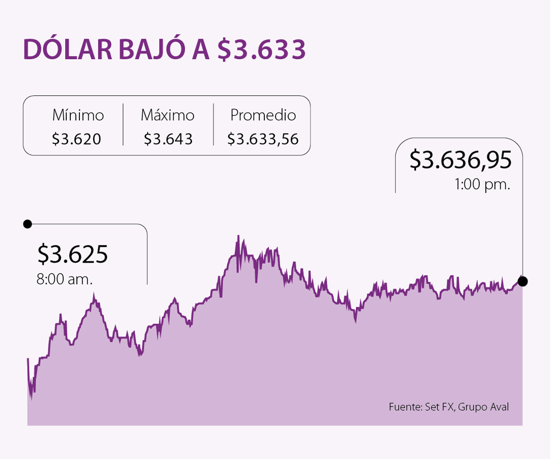 Esta semana inició con la continuidad en la caída en el precio del dólar durante las últimas jornadas y, con una baja intradía de $21, la divisa se cotizó en promedio a $3.633,56.