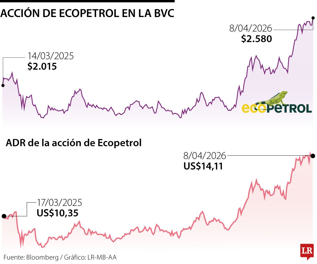 La acción de Ecopetrol estuvo marcada por la volatilidad esta semana; si bien el martes inició la jornada al alza, cerró con una caída cercana a 2%. Esta tendencia se mantuvo en la sesión de ayer, pues el título perdió 4,09% hasta $2.580 en la BVC, mientras su ADR perdió 4,01% a US$14,12, tras el desplome del precio del petróleo después de que Estados Unidos e Irán acordaran un alto el fuego de dos semanas.