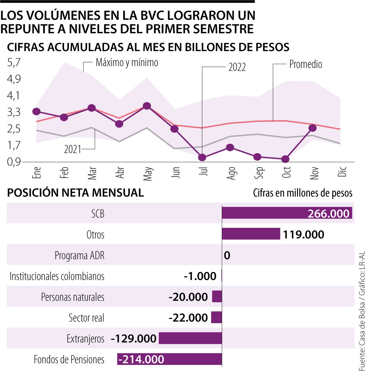 De hecho, en el informe que publica mensualmente Casa de Bolsa reportaron que los extranjeros en noviembre tuvieron una posición neta negativa de $129.000 millones, cuando en la mayoría de los meses compran más de lo que venden.