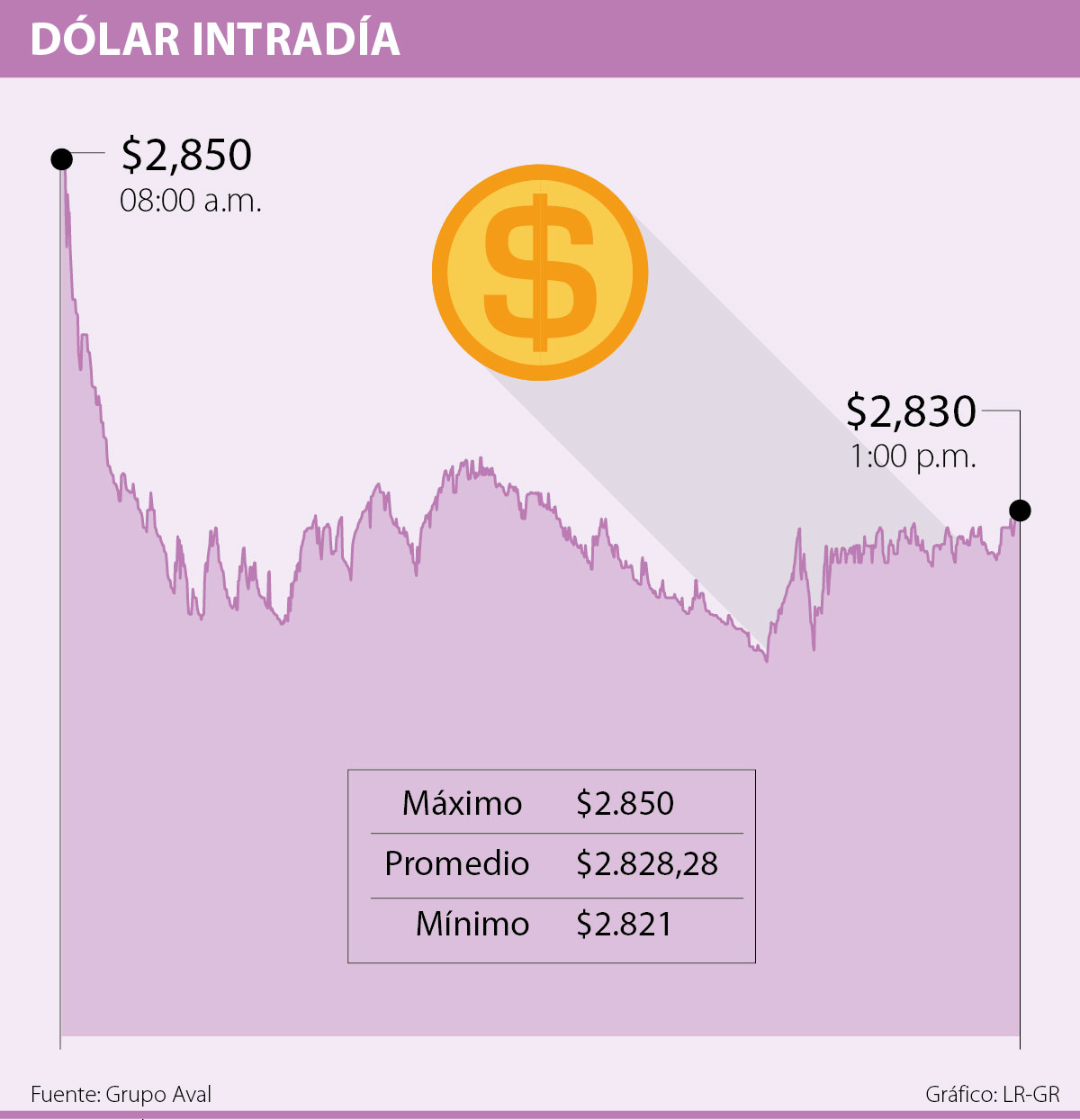 El dólar comenzó las bajas desde el inicio de la jornada pues su precio máximo de negociación fue el mismo valor de apertura, establecido en $2.850. Mientras que la moneda cerró a un precio de $2.830, caída que no alcazaba desde la jornada del 15 de mayo en la que cerró a $2.824,05.