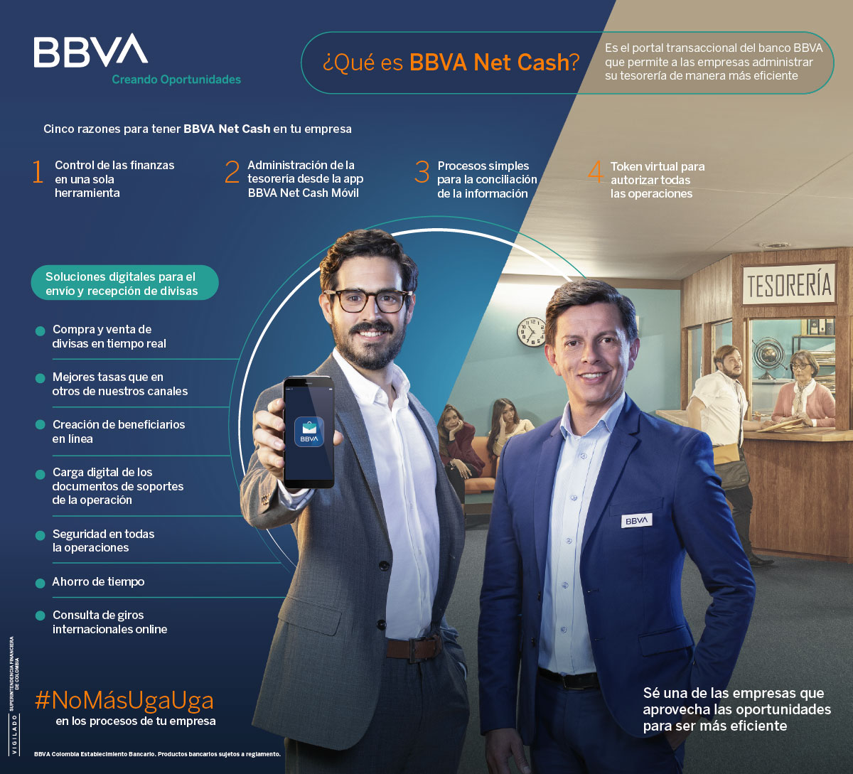 El banco BBVA ofrece soluciones globales para empresas sin importar su tamaño, dentro de todo su portafolio de productos se encuentra BBVA Net Cash web y móvil, un portal transaccional que permite administrar la tesorería de las empresas de manera eficiente.