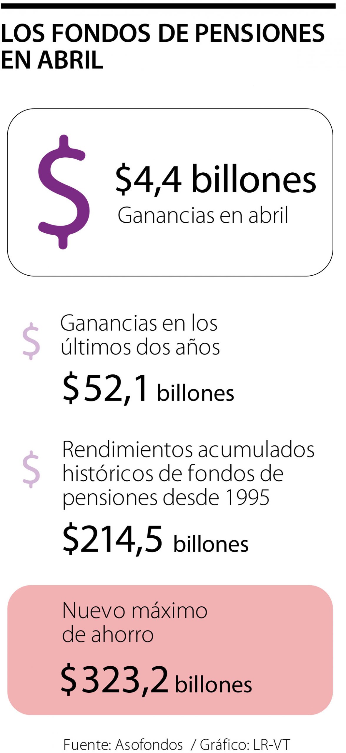 Los fondos de pensiones Colfondos, Porvenir, Protección, y Skandia mostraron cifras positivas en abril. De acuerdo con la Asociación Colombiana de Administradoras de Fondos de Pensiones y de Cesantía (Asofondos), en los primeros cuatro meses del año los fondos lograron un nuevo máximo en ahorro de $323,2 billones, con ganancias por $4,4 billones en abril.