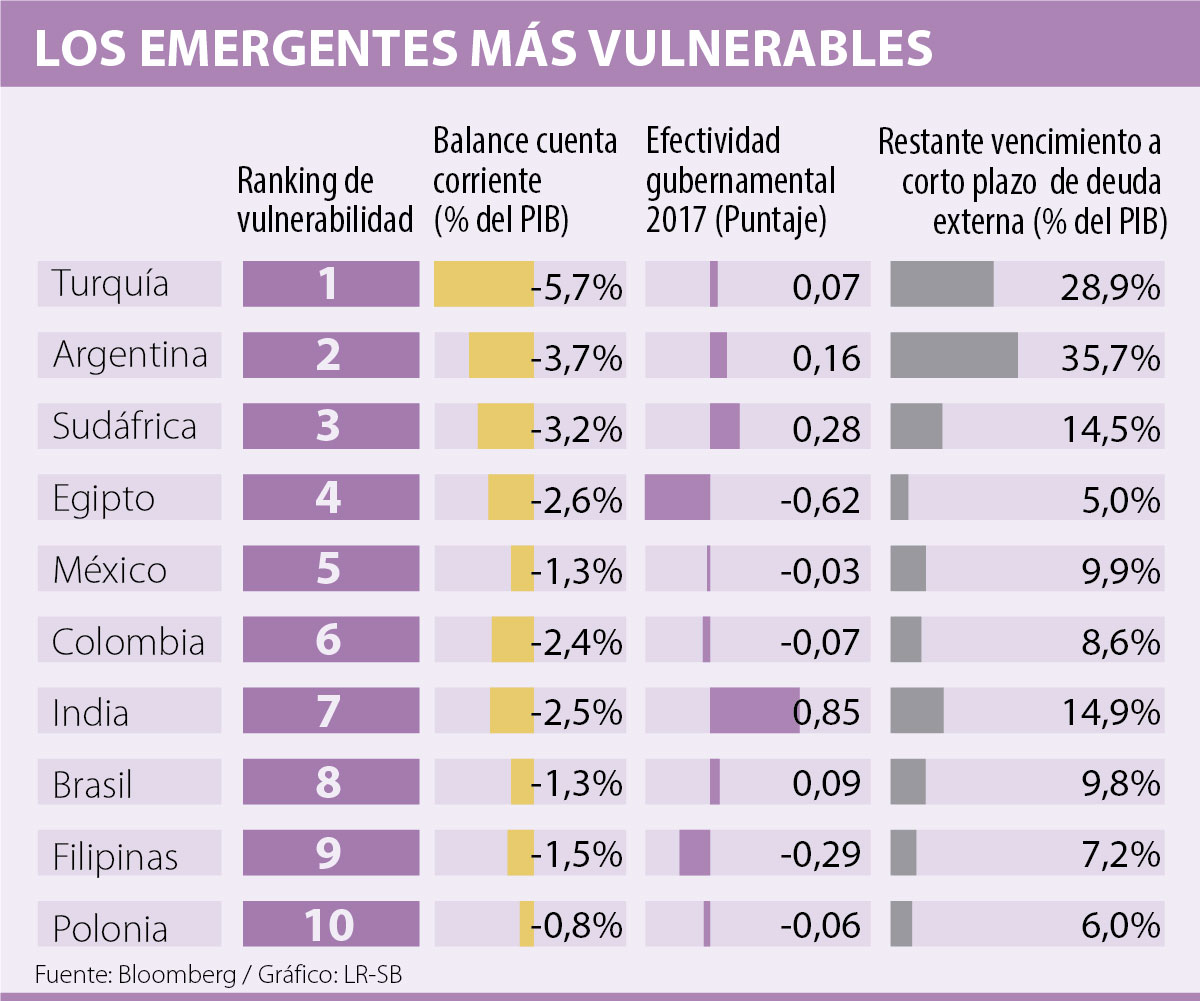Ante la evidente vulnerabilidad de los emergentes frente a las tensiones globales, Bloomberg Economics volvió a revelar un informe en donde muestra el ranking de las naciones más débiles ante una crisis mundial.