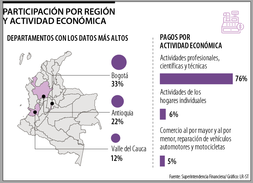 Por otro lado, Bogotá, Antioquia y Valle del Cauca fueron las regiones con más operaciones presenciales, mostrando 33%, 23% y 12% del total, respectivamente, lo que mostró un fuerte impacto ya que se movió más del 50% de transacciones del país en tan solo tres departamentos.