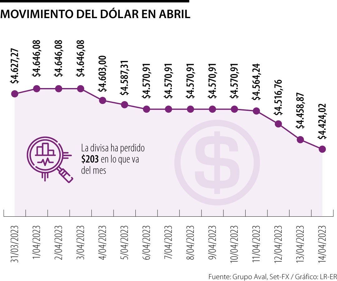 Durante abril, el dólar ha perdido $203 con un comportamiento que le permite a la divisa colombiana ser la mejor moneda emergente y la de América Latina en el mes.