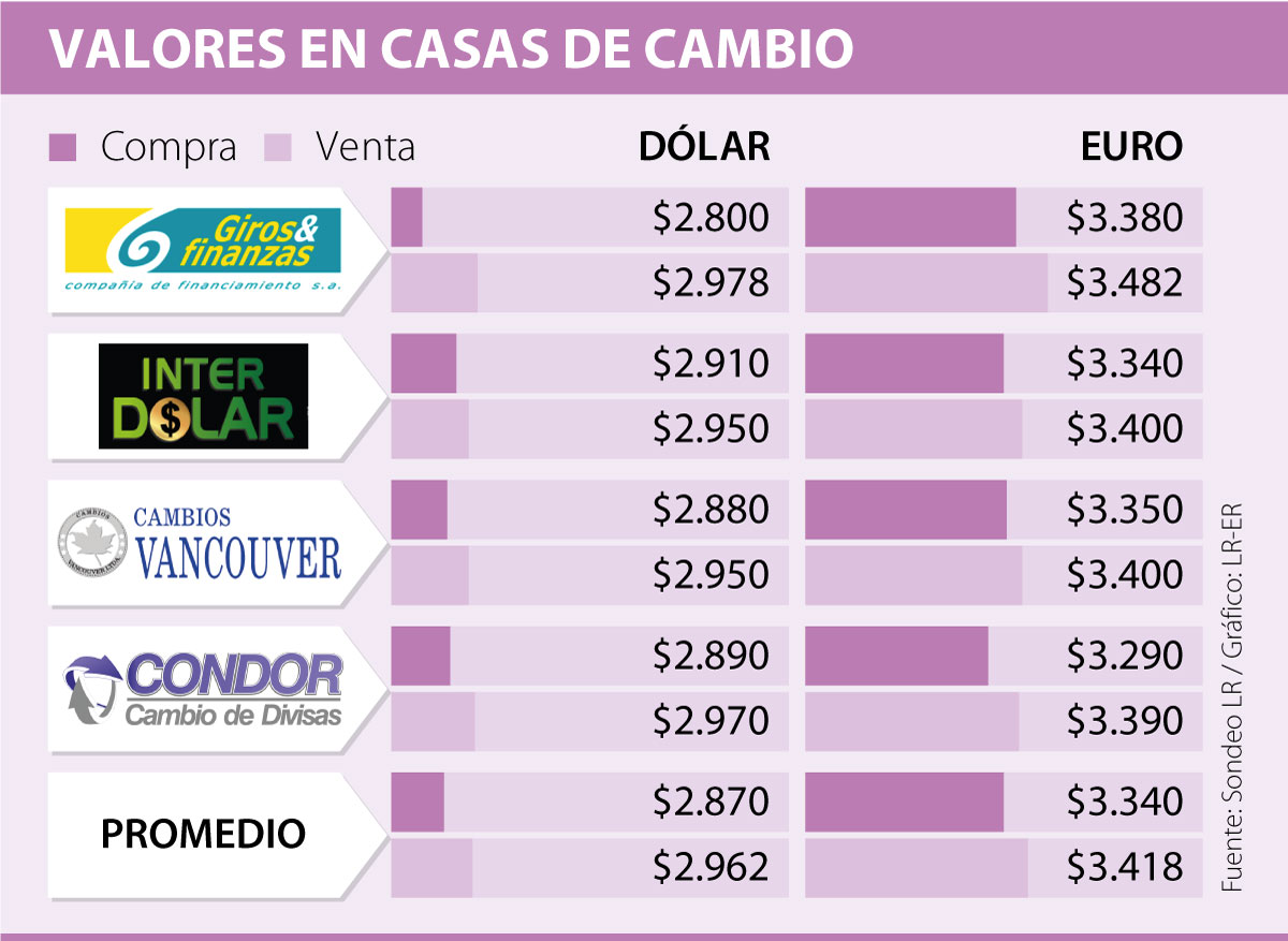 Por su parte, el euro se venderá en promedio a $3.418, un aumento de apenas $12 frente a su anterior precio de $3.406. Mientras que su precio de compra estará en $3.340.