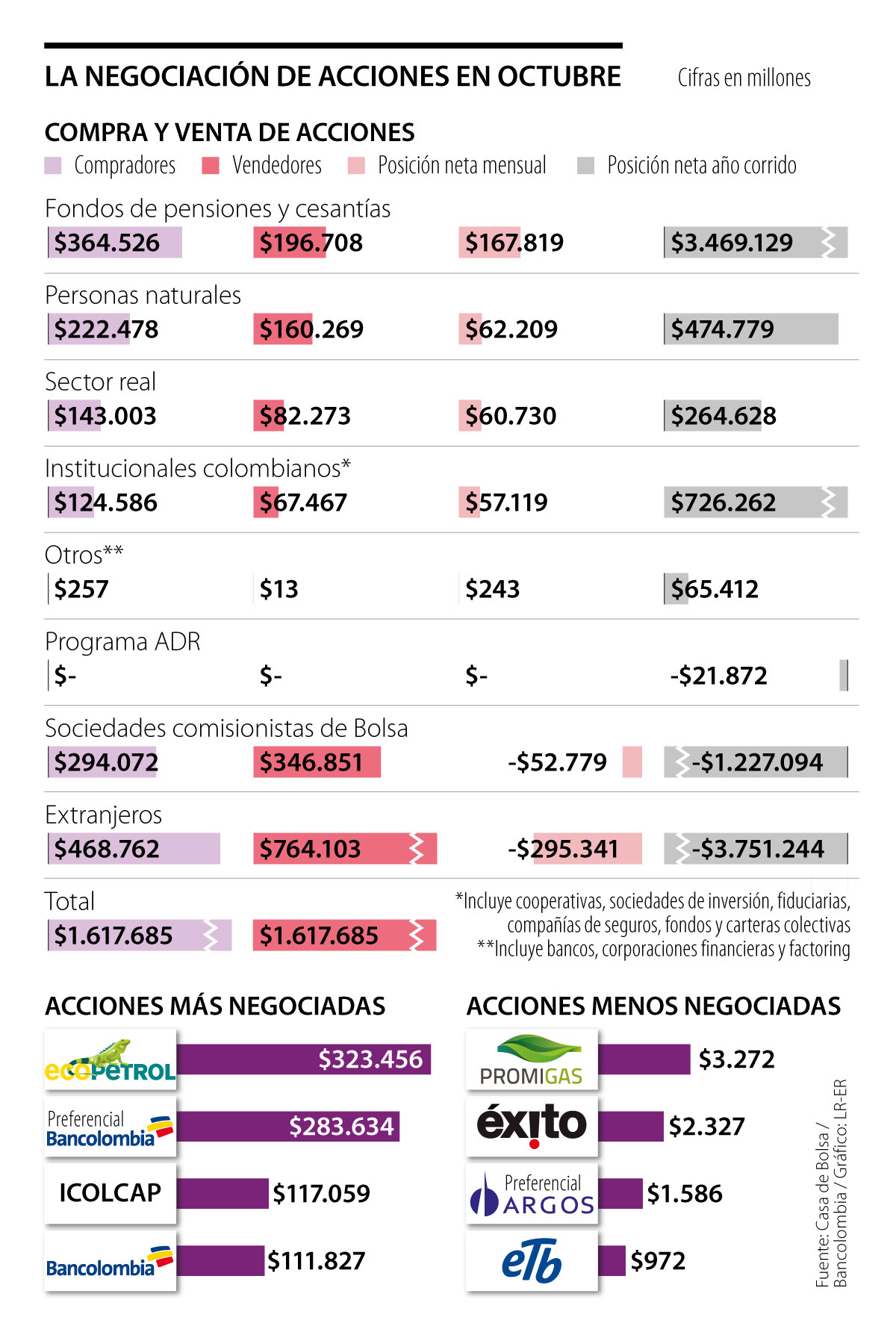 Por el lado de las ventas netas, los extranjeros las lideraron de nuevo en octubre, pues movieron $295.341 millones.
