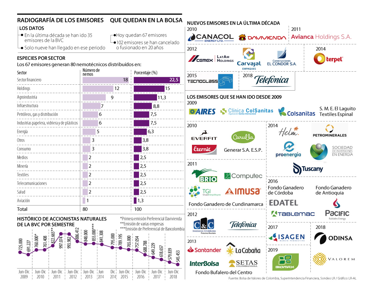 Actualmente, entre los 67 emisores que aún están en bolsa se generan 80 nemotécnicos en más de 15 sectores económicos diferentes.