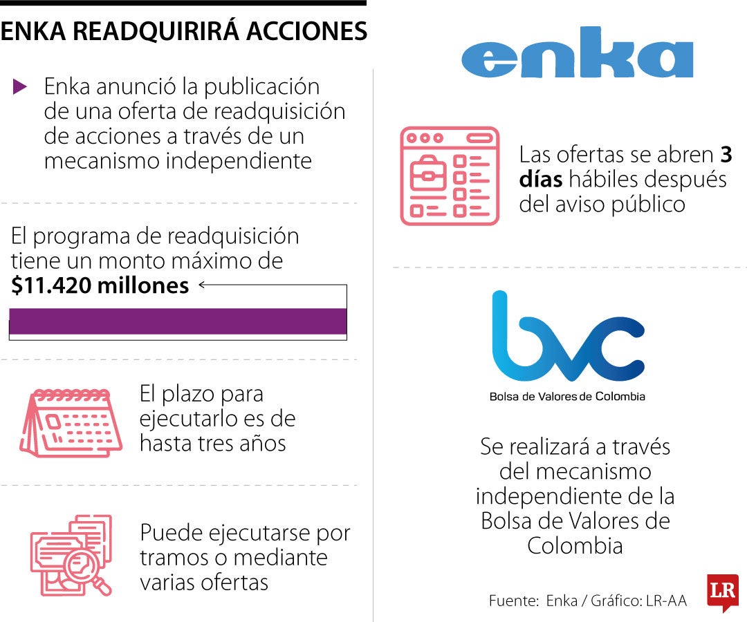 Asimismo, el precio de readquisición, así como el número de títulos de cada uno de los tramos, será informado por medio de la Superfinanciera. Los destinatarios del programa de readquisición son los accionistas de Enka, quienes deben estar debidamente inscritos como tal ante Deceval.