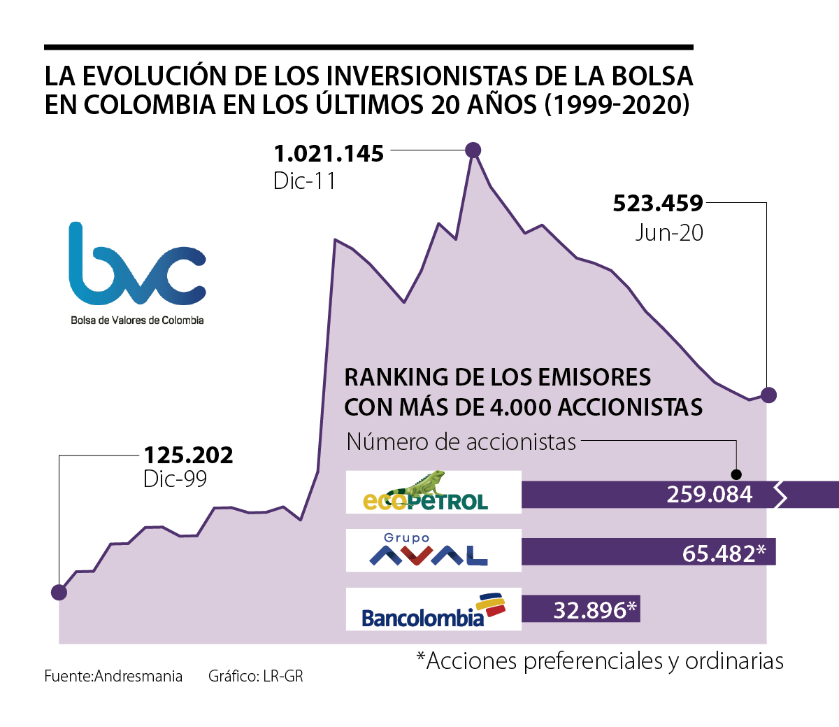 Se da el ejemplo del caso de Acerías Paz del Río, pues hay 407.000 socios perdidos. Lo mismo sucede con empresas que llevan varias décadas negociando en la Bolsa como Banco de Bogotá, Bancolombia, Coltejer, Fabricato y Bbva.