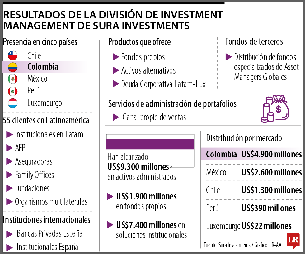 Una de las razones es porque en Colombia nació la plataforma de activos alternativos y desde ahí se fue desplegando. Ahí, la mayor exposición que hay la tenemos en los fondos de deuda para el desarrollo de infraestructura. De los US$4.900 millones en Colombia, casi US$2.000 millones son de fondos de activos alternativos y $3.000 millones son de gestión de carteras.