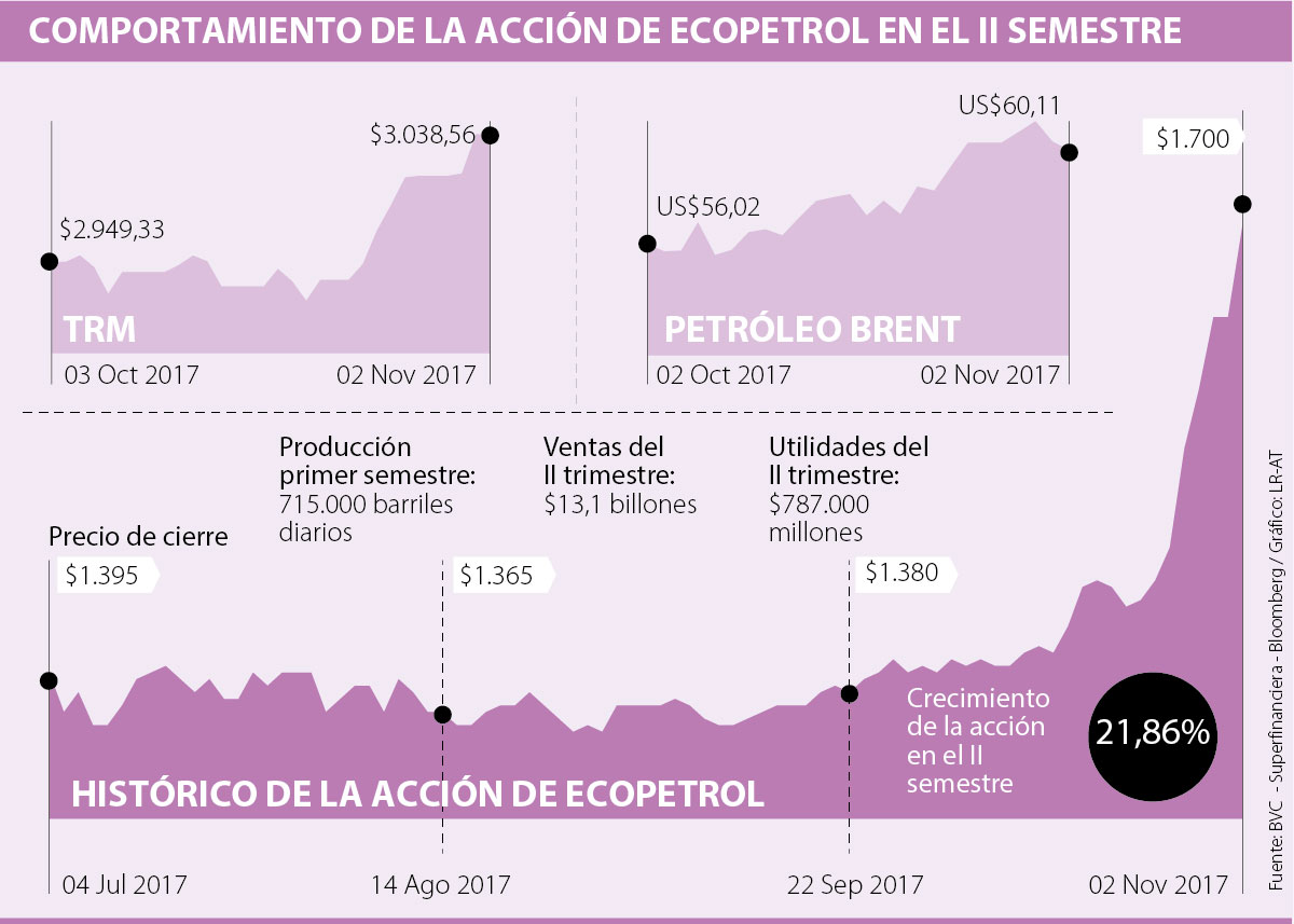 Teniendo en cuenta unos precios del petróleo en máximos de 28 meses, un dólar que sigue subiendo más allá de los $3.050 y los resultados de Ecopetrol a la vuelta de una semana, una pregunta que puede estar rondándole la cabeza es si es momento de comprar acciones de la petrolera, que en el segundo semestre se han valorizado 24,3%.