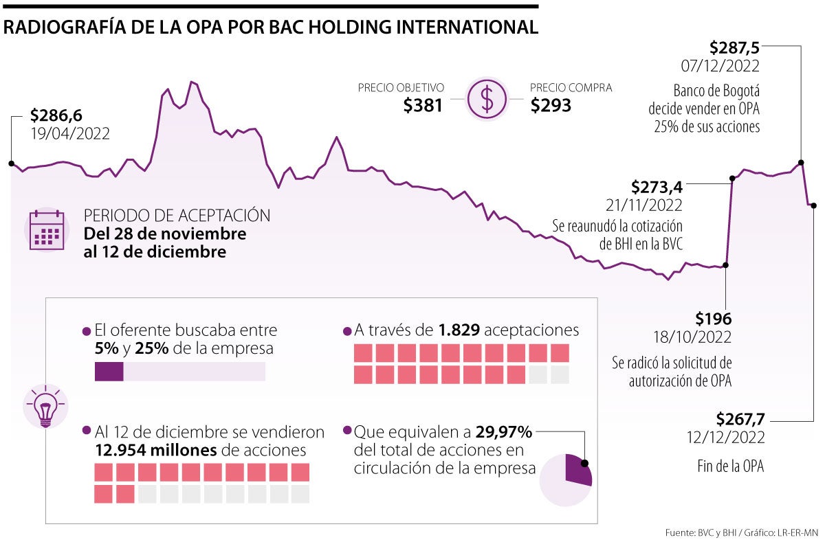 El oferente, bajo el control de Luis Carlos Sarmiento, buscaba hasta 25% de BAC Holding International. La acción ha subido 27,55%