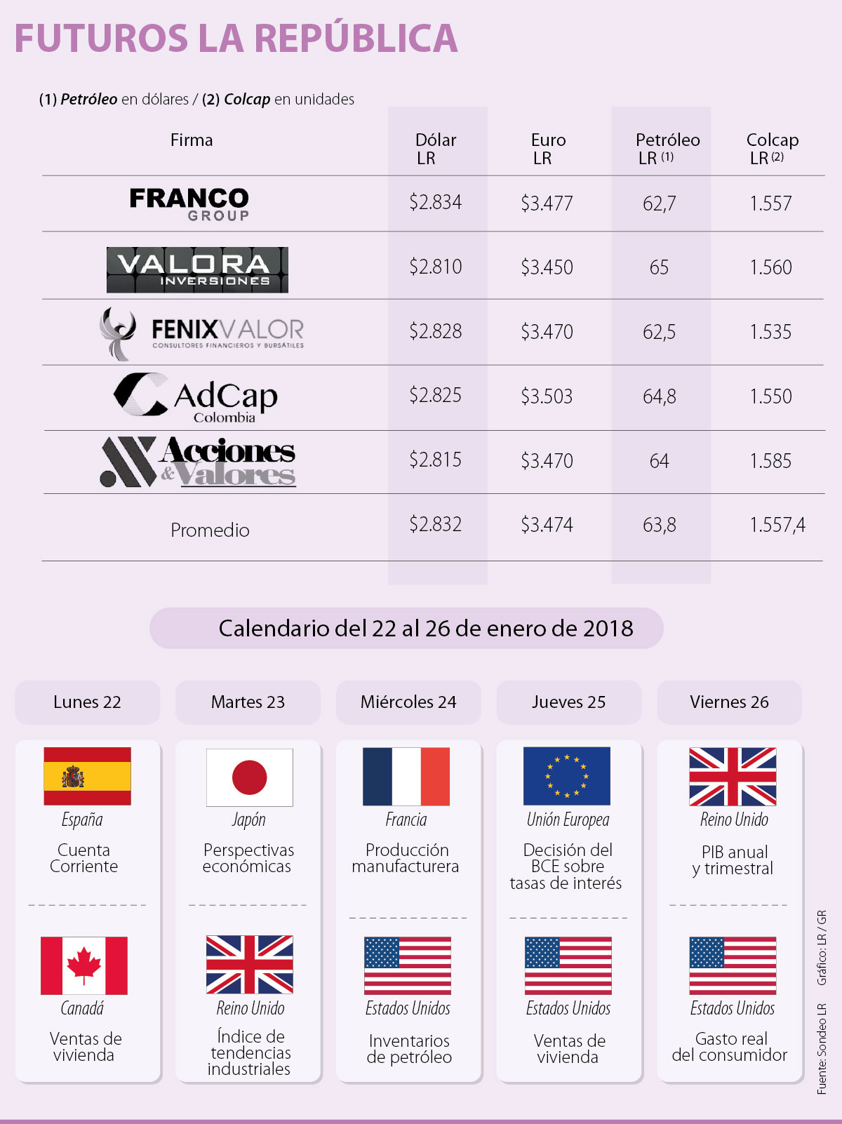 En cuanto al petróleo, se espera que el barril del WTI se ubique en US$63,8.
