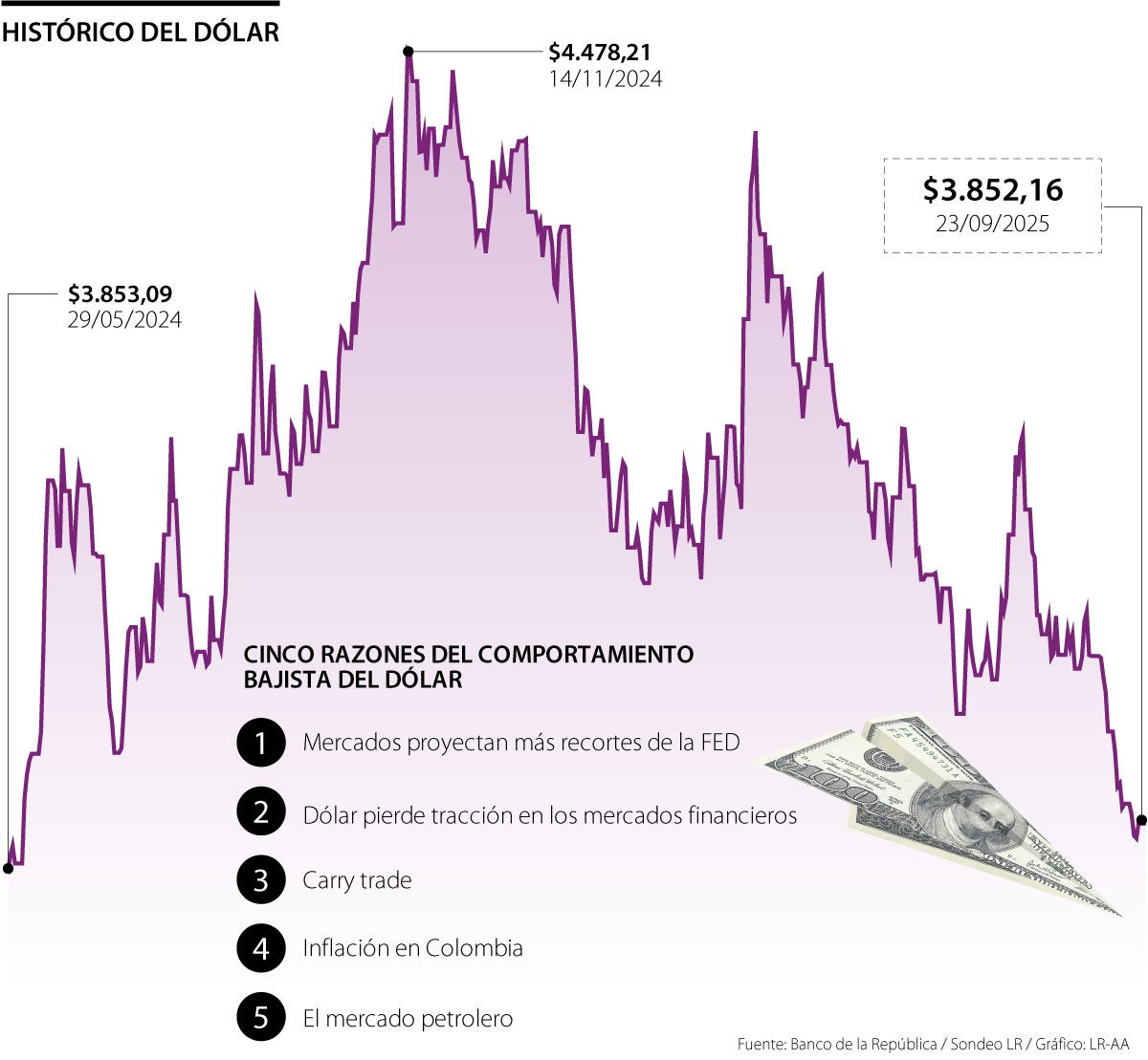 Recortes de la FED, pérdida de tracción de la divisa en los mercados, el carry trade, la inflación en Colombia y el petróleo, entre las causas