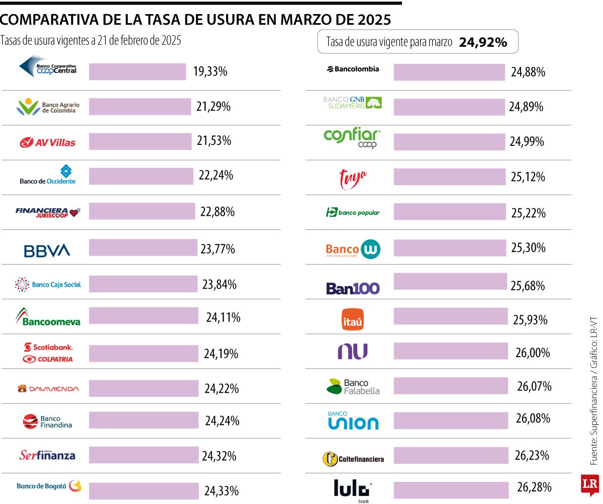 La Superfinanciera certificó una nueva tasa de usura de 24,92% para el tercer mes del año y retomó la senda bajista que había sido interrumpida en febrero