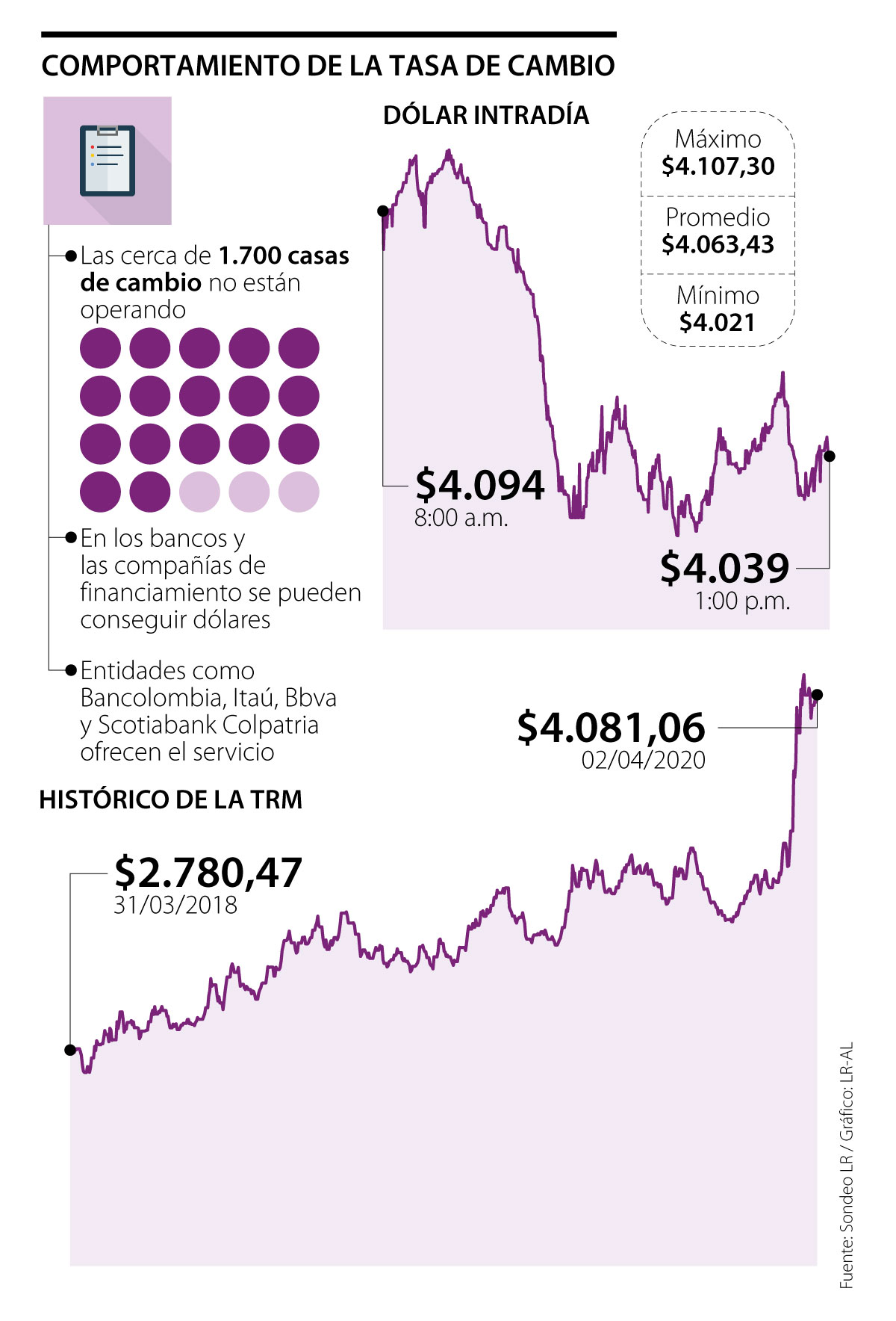 Sin embargo, pese a que la tasa de cambio está por encima de $4.000 actualmente, para las personas naturales no resulta tan fácil acatar estos consejos, ya que la actividad de las casas de cambio no fue autorizada para operar durante la cuarentena. Por ello, las alrededor de 1.700 oficinas que se dedican a la compra y venta de divisas están cerradas.