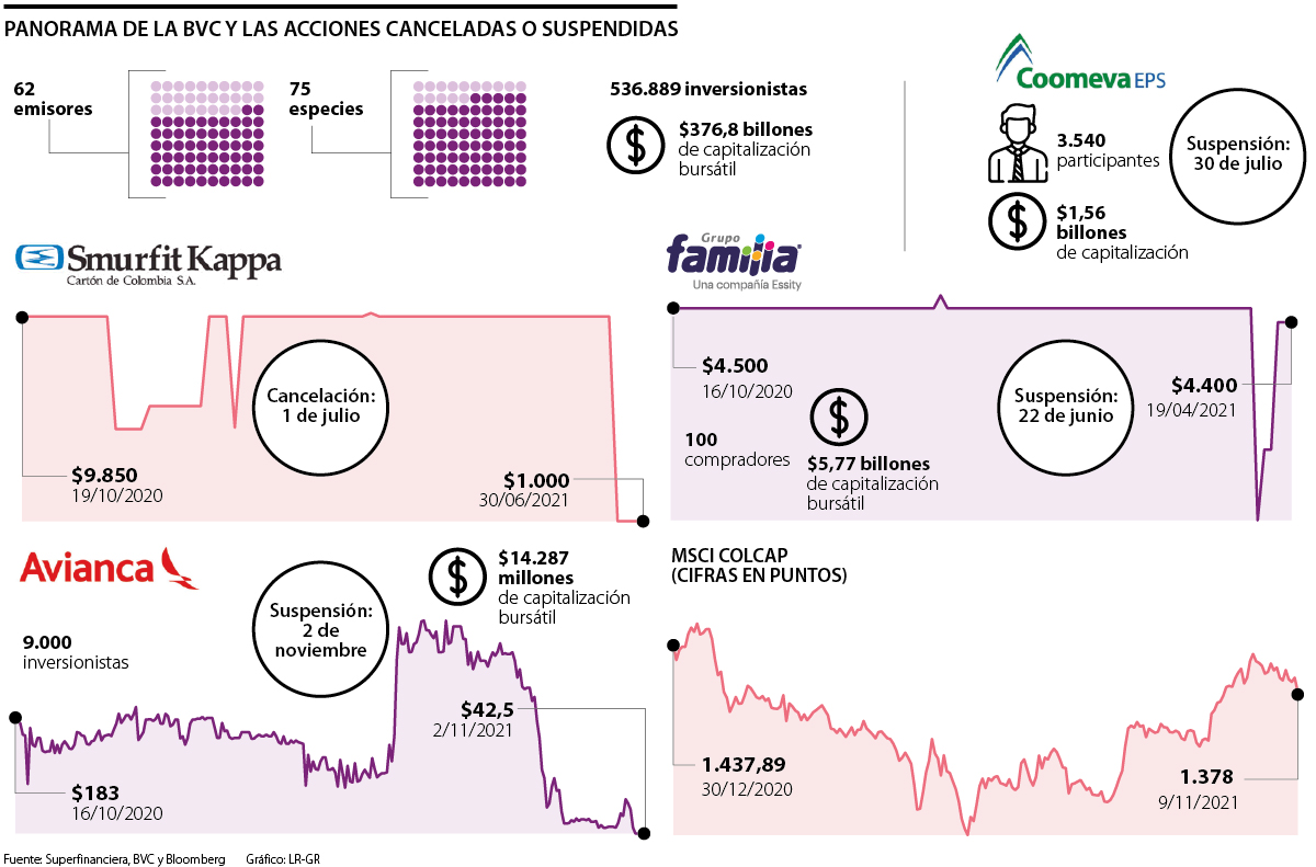 Productos Familia, Coomeva EPS y Cartón de Colombia fueron suspendidas tras una OPA. Avianca dejó de negociarse con su reestructuración