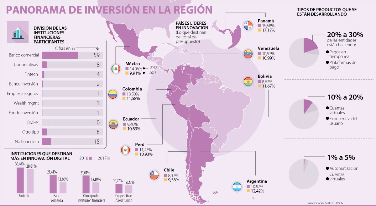 Según Cobis en la región uno de los principales retos es que “las entidades tradicionales deben evolucionar al mismo ritmo que las startups y fintech, así deben incrementar su inversión en innovación digital para adaptarse rápidamente a los cambios del negocio. Por esto el mercado debe enfocarse en la implementación de tecnologías que faciliten el desarrollo de nuevos productos y servicios financieros y no financieros, y repensar el rol de las sucursales físicas para convertirlas en un valor añadido para el cliente final”.