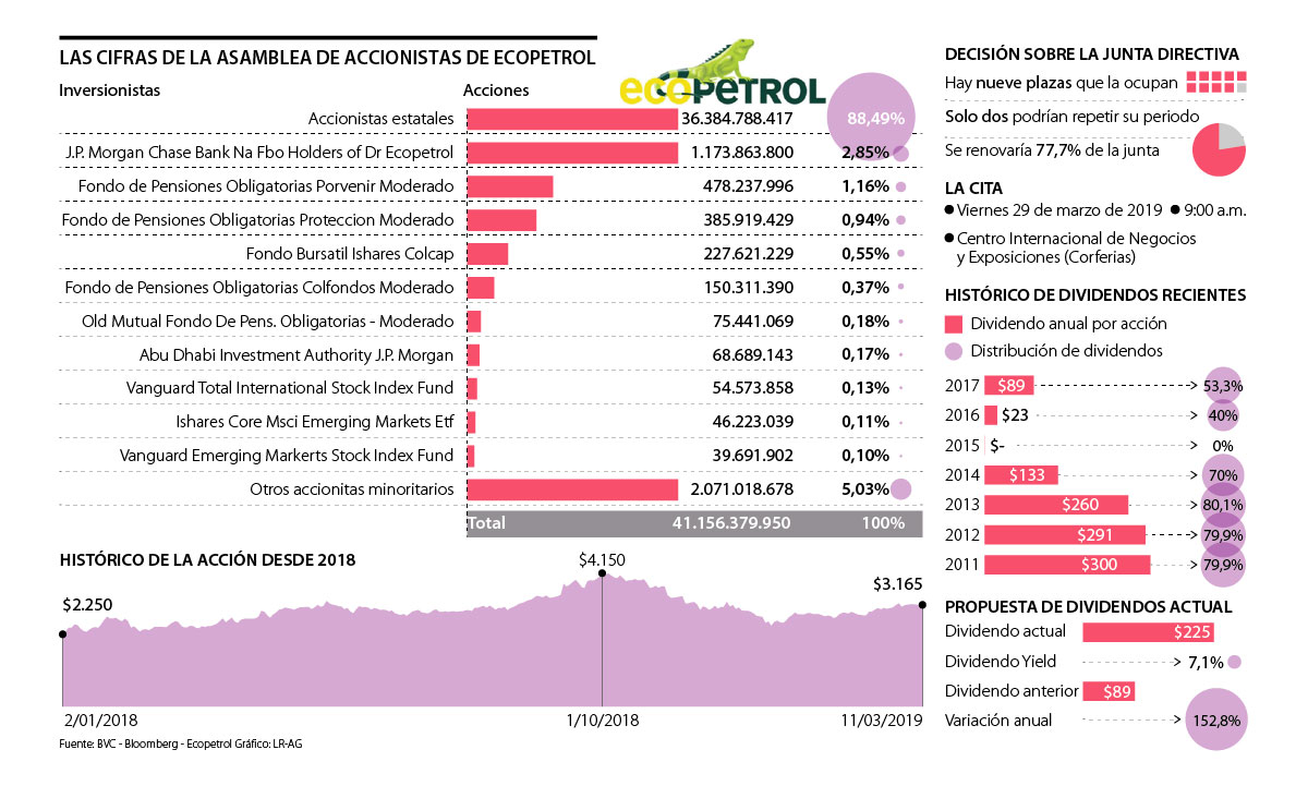 La temporada de asambleas de accionistas tendrá a final de mes una de las reuniones más importantes. Se trata de la asamblea de accionistas de Ecopetrol que se realizará el próximo viernes 29 de marzo a las 9:00 a.m., en el Centro Internacional de Negocios y Exposiciones (Corferias) en Bogotá.