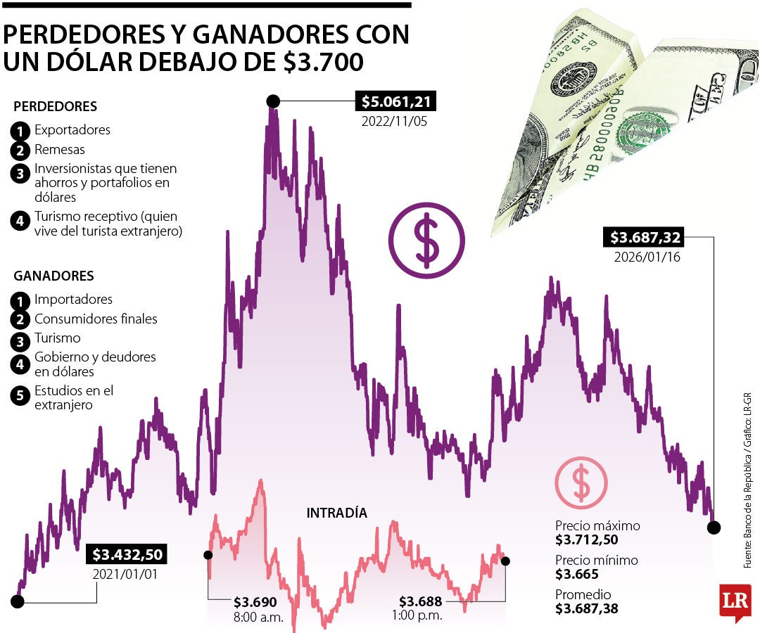 El dólar continúa con una tendencia estructural bajista que sigue asociada a la venta de deuda del Gobierno en dólares, un proceso que el mercado ha venido descontando de manera anticipada y que ha incrementado la oferta de divisas. La expectativa de nuevas emisiones externas, con vencimientos de tres, cinco y siete años, ha llevado a inversionistas institucionales a vender dólares de forma preventiva, presionando la tasa de cambio a la baja. Aunque en la jornada anterior el dólar registró un repunte, la divisa se mantiene por debajo de los $3.700, un nivel que no tiene efectos homogéneos sobre la economía.
