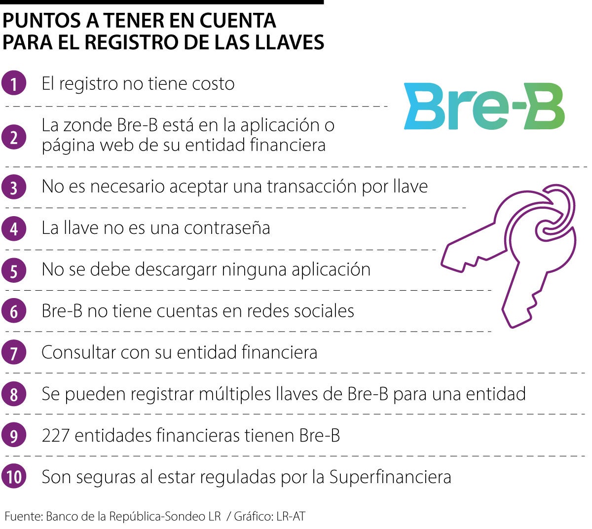 La aplicación móvil de la entidad financiera es el canal de operación de Bre-B; el Emisor puntualiza que el sistema no tiene una aplicación propia. “Ni Bre-B ni las llaves tiene cuenta en ninguna red social como Instagram, X o TikTok, entre otras. Bre-B tampoco tiene una página de internet propia. La información oficial se encuentra en la página del Banco de la República y en las páginas de las entidades que participan en el nuevo ecosistema”, dijo la entidad.