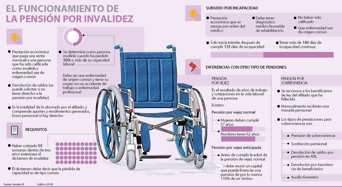 Lo primero que se debe saber es que esta pensión es uno de los beneficios que tiene la seguridad social en Colombia, y se entiende como invalidez el haber perdido en 50% o más la capacidad laboral para ejercer algún trabajo, y esta capacidad se va perdiendo en la medida en que se detecte alguna enfermedad. También la disminución considerable visual, auditiva o de movilidad como explicó David Cuervo, director Wealth Mercer Consultora Pensiones.
