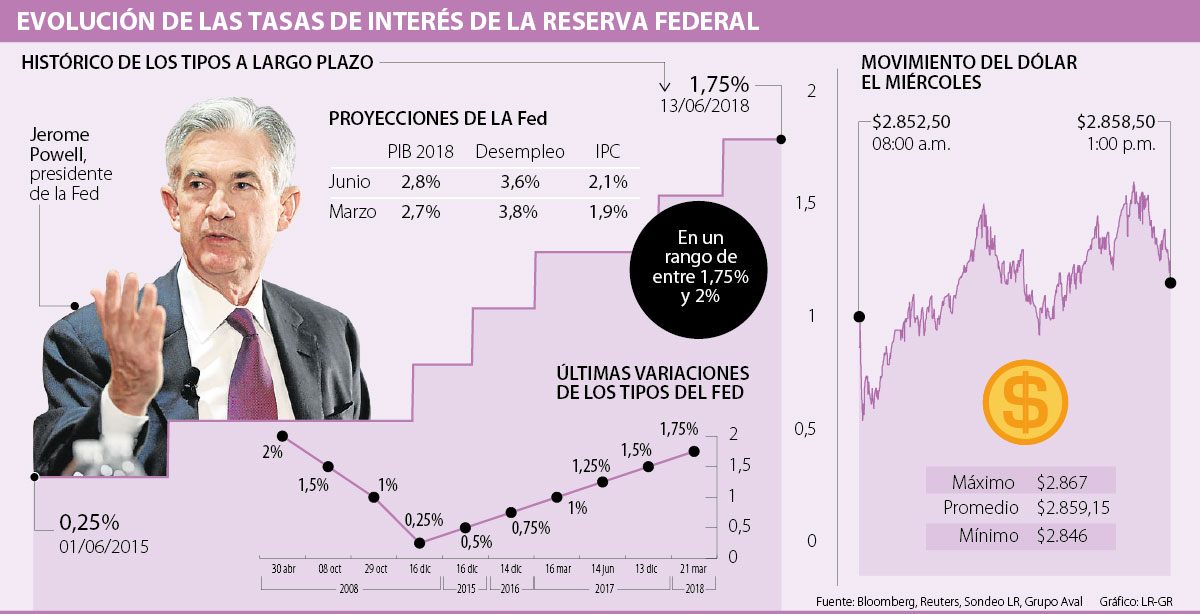 Esto ha generado que el dólar se fortalezca ante sus pares y frente a monedas emergentes. De acuerdo con Omar Suárez, gerente de renta variable de Casa de Bolsa “a pesar de que esta subida ya estaba descontada por el mercado, la tasa de los bonos del Tesoro y el dólar se fortalecieron porque la Fed cambió sus expectativas de subidas en el año al pasar de tres a cuatro”. El analista comentó que “esto traerá presiones devaluacionistas sobre el peso colombiano”.