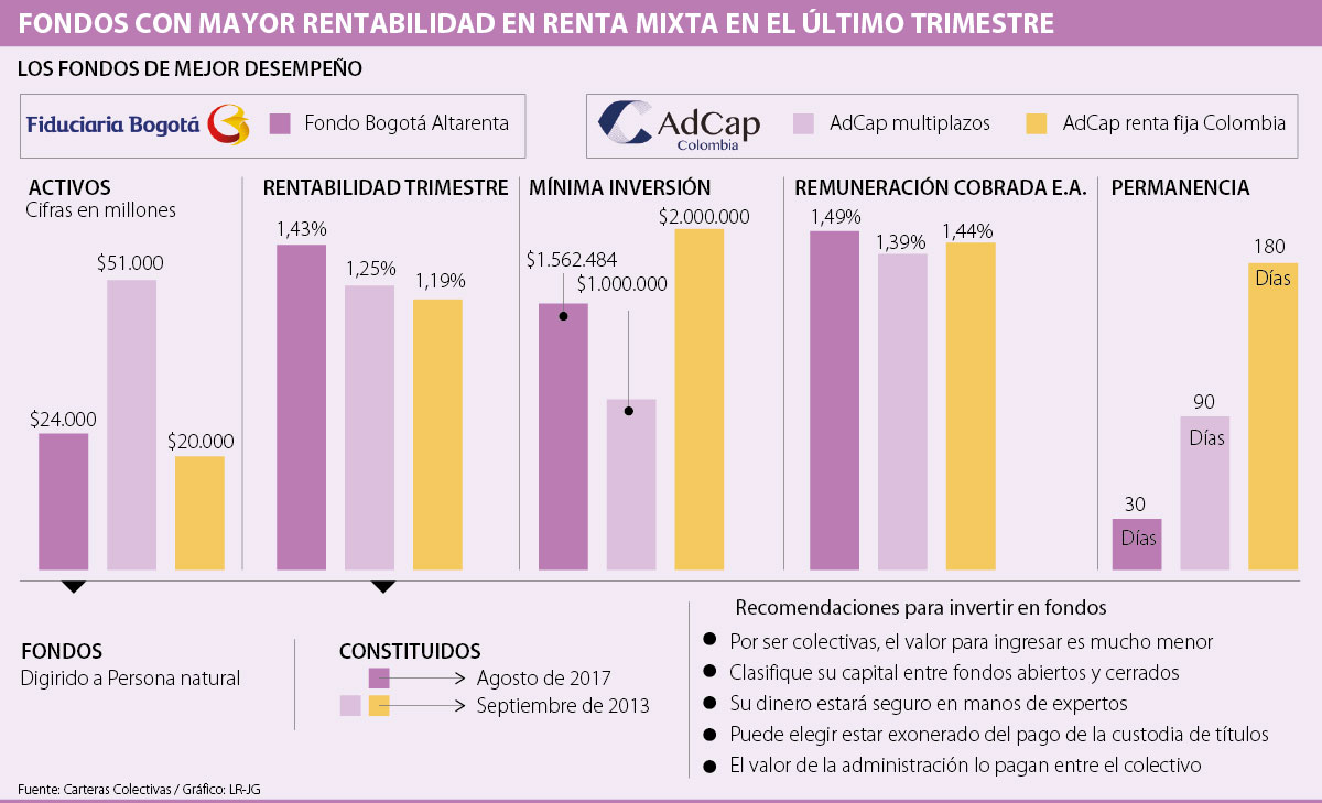 Según un reporte del portal Carteras Colectivas, en el último trimestre hubo tres fondos, en estrategia de renta mixta moderada, que entregaron rentabilidades por encima de 1,19%.