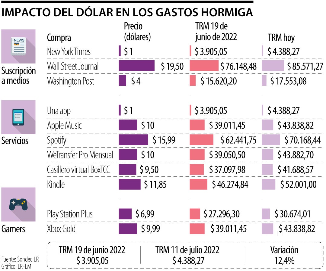 Los gastos hormiga por ejemplo, desde las elecciones han aumentado 12,4%, teniendo en cuenta la Tasa Representativa del Mercado (TRM) vigente para hoy ( $4.388,27.). Estas pequeñas compras que suelen no parecer importante por el bajo monto que representa, e incluye la compra de elementos simples o de satisfacción momentánea e inmediata, sumadas, dan como resultado un gran capital perdido que impacta sus finanzas al final del mes.