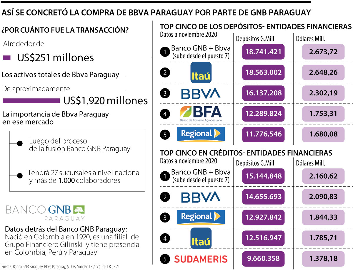 En agosto de 2019, el Banco GNB Paraguay, una filial del Grupo Financiero Gilinski, había anunciado la firma de un acuerdo para la compra de 100% del paquete accionario de Bbva Paraguay. Luego de casi un año y medio, la operación fue concretada por un importe total de US$251 millones.