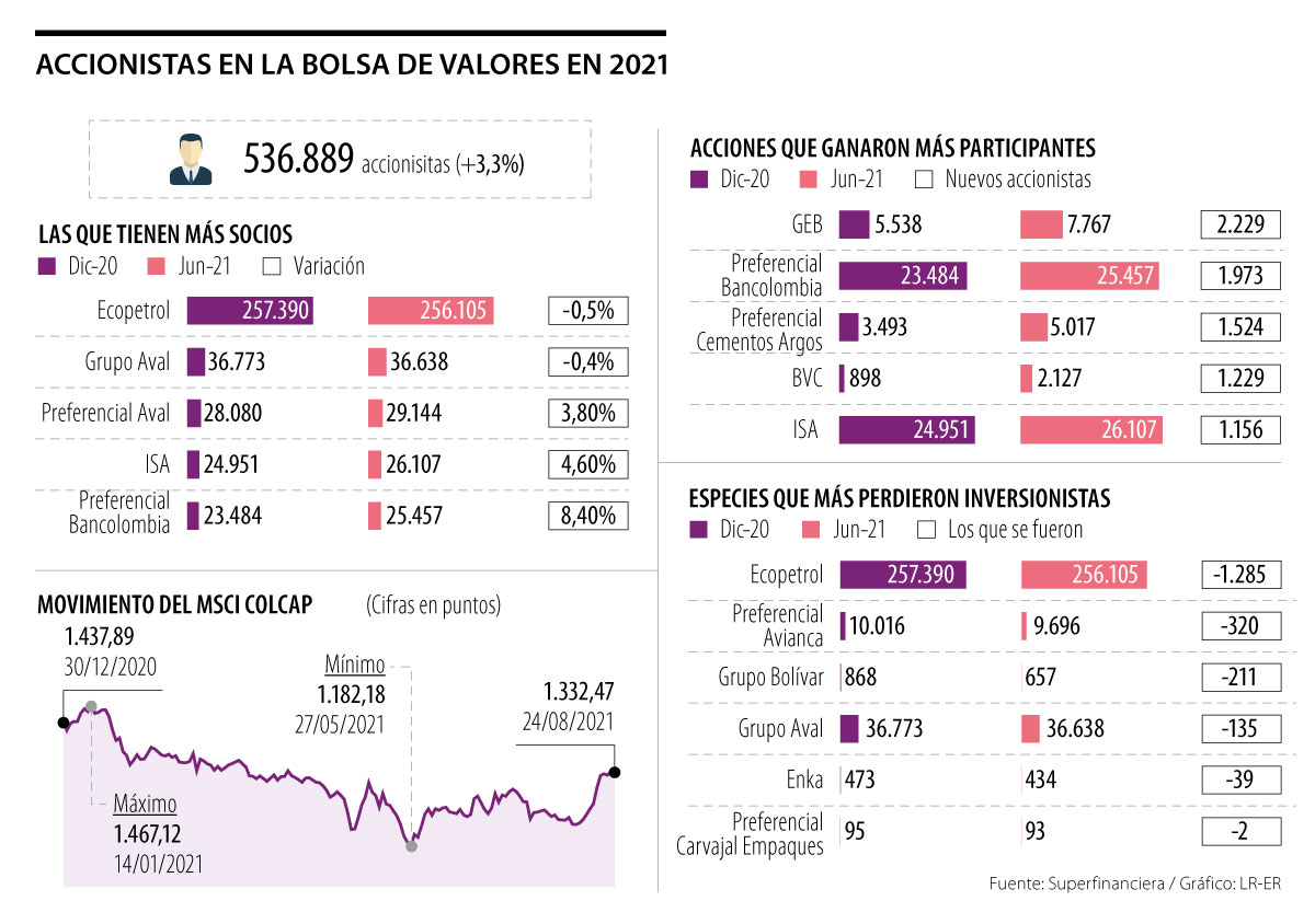 Los emisores que vieron salir más compradores fueron Ecopetrol y Avianca. El mercado completa un total de 536.889 inversionistas