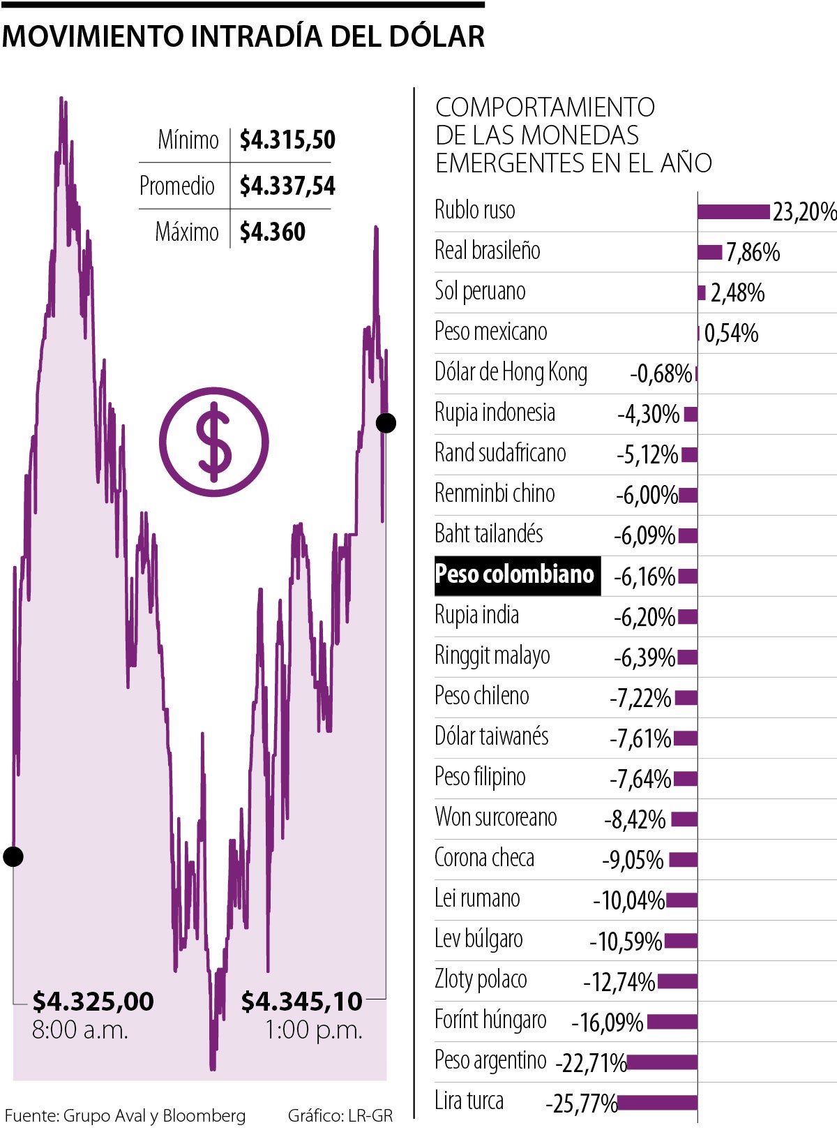 Según la plataforma Set-FX, el precio de apertura de la divisa estadounidense fue de $4.325 este viernes, mientras que el máximo alcanzó niveles de $4.360 y el mínimo $4.315,5. Durante la jornada se negociaron más de US$750,8 millones a través de 1.235 transacciones.