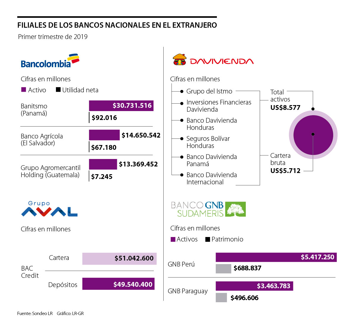 En cuanto a Davivienda, el banco tiene presencia en Panamá, Costa Rica, Honduras, El Salvador y Estados Unidos. En el primer trimestre del año, sus activos sumaron US$8.577 millones, 6,2% más que los del mismo periodo de 2018.