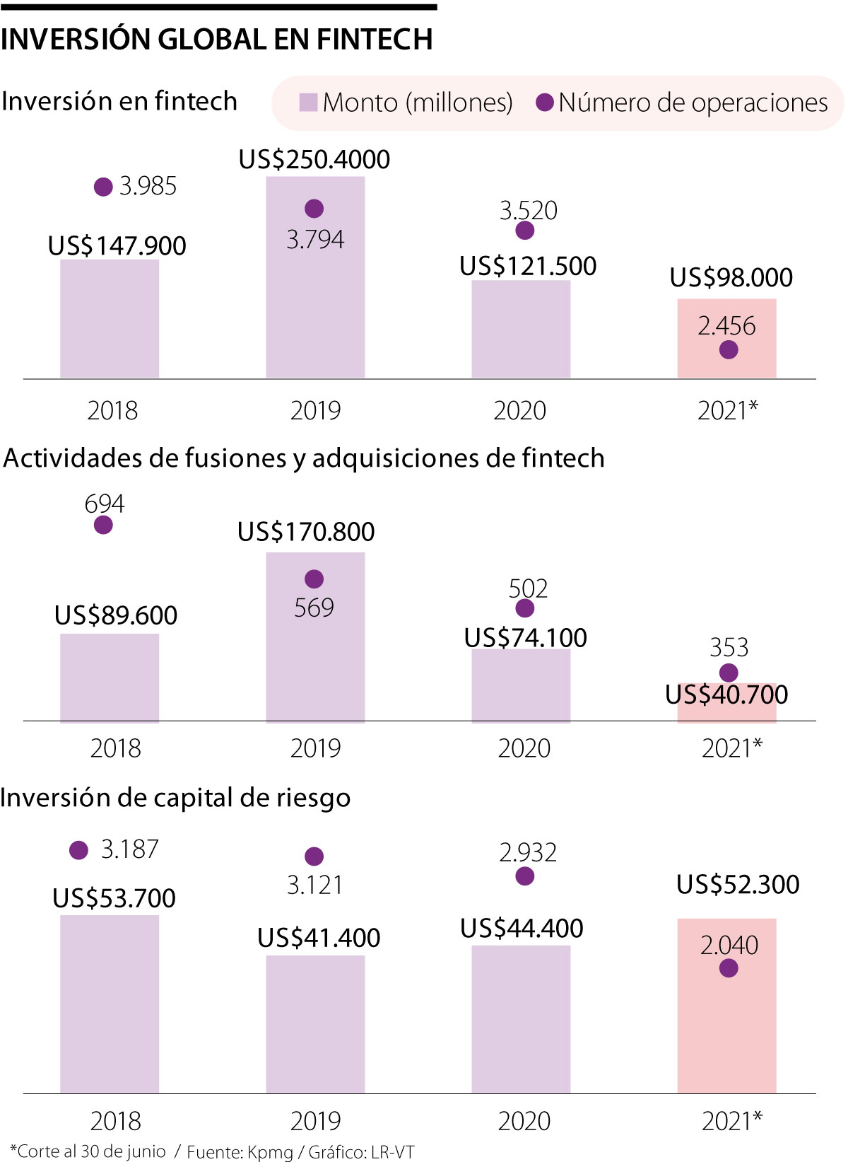 La compañía también reveló que para el primer semestre de 2021 la inversión total en empresas fintech alcanzó US$98.000 millones a través de 2.456 operaciones