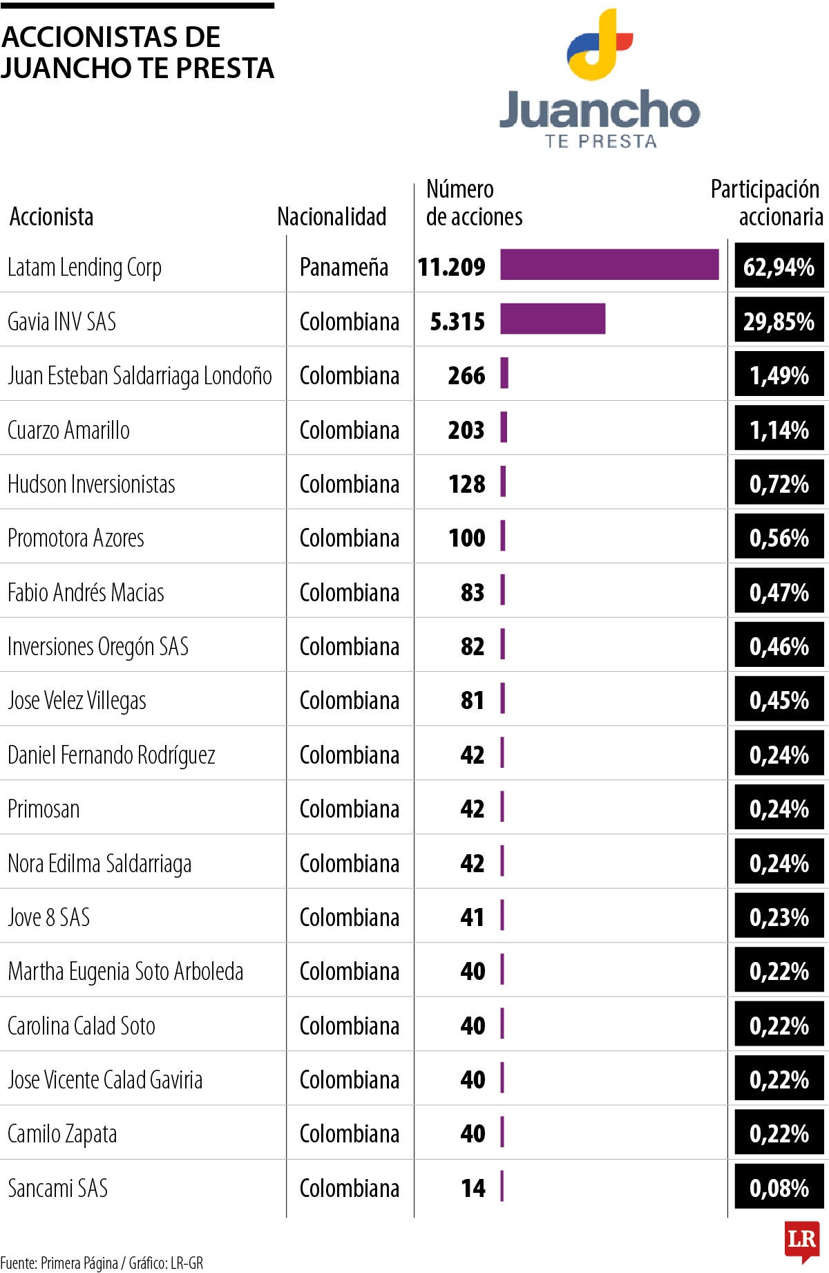 La fintech, que ganó reconocimiento por el nombre de exciclista paisa Juan Esteban Saldarriaga quien funge como gerente, representante legal y socio fundador con 1,49% de participación accionaria, desembolsó alrededor de 30.000 créditos bajo un modelo de bajos montos con préstamos entre $1 millón y $5 millones.