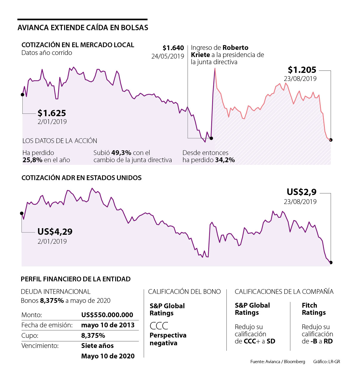 Precisamente, “los resultados de la compañía para el primer semestre salieron peor de lo esperado por el mercado”, según comentó Ómar Suárez, gerente de renta variable de Casa de Bolsa. El analista resaltó que además de su deuda, a Avianca le está pegando duro un precio del dólar en máximos históricos al tiempo que los precios del crudo necesario para su combustible no bajan lo suficiente.