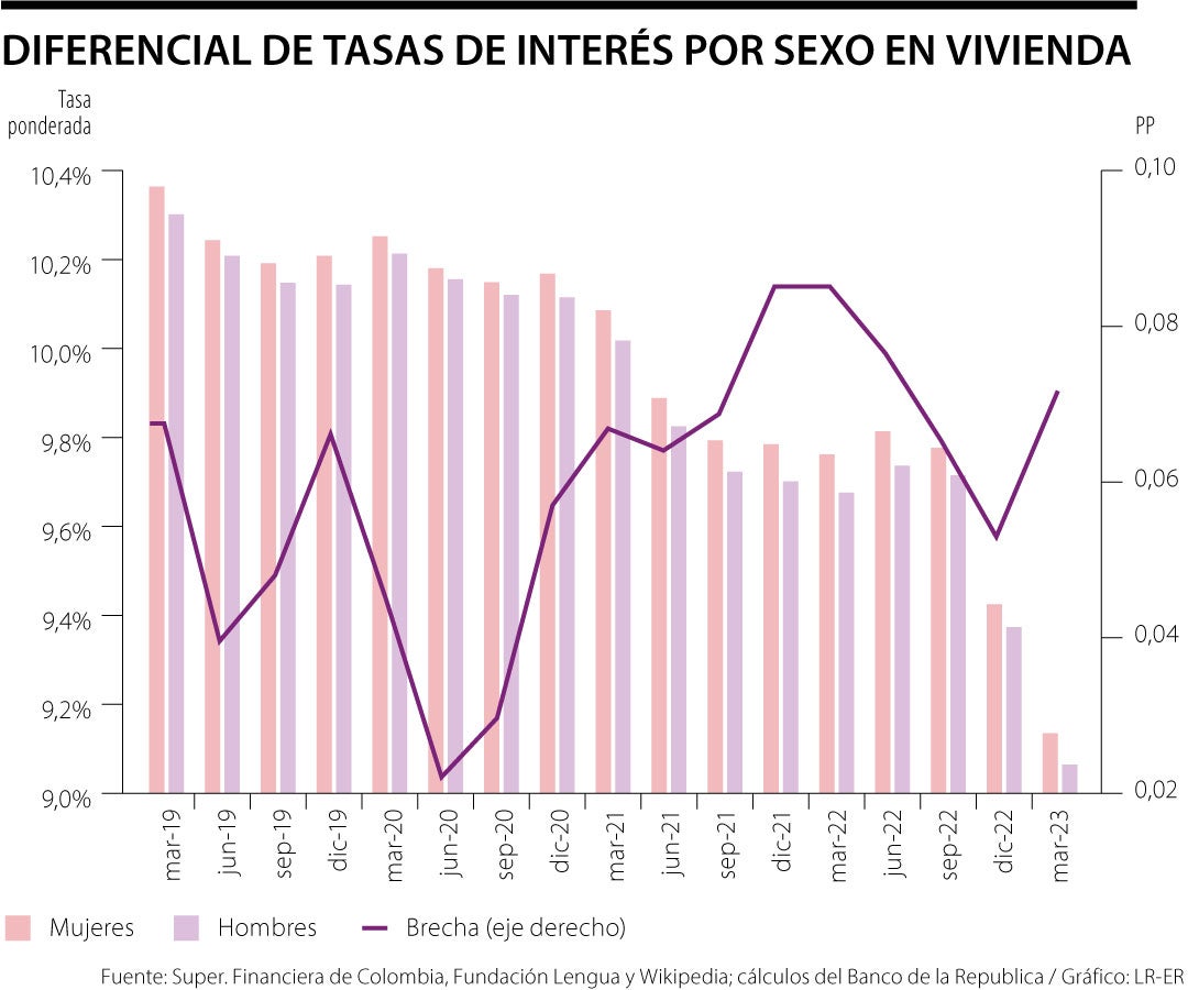 La brecha está a favor del género masculino, excepto en algunas excepciones, como en segmentos como consumo de tarjeta de crédito para clientes con ingresos menores a 2 salarios mínimos legales mensuales vigentes, adquisición de vivienda VIS, adquisición de vivienda en UVR y microcrédito de bajo monto, según el informe.